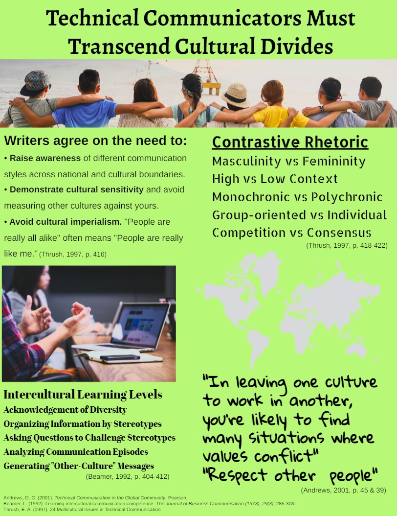 Along the way, I also created this flyer discussing how cultural divides influence technical communicators, and this storyboard discussing the role social media might play in writing classrooms.